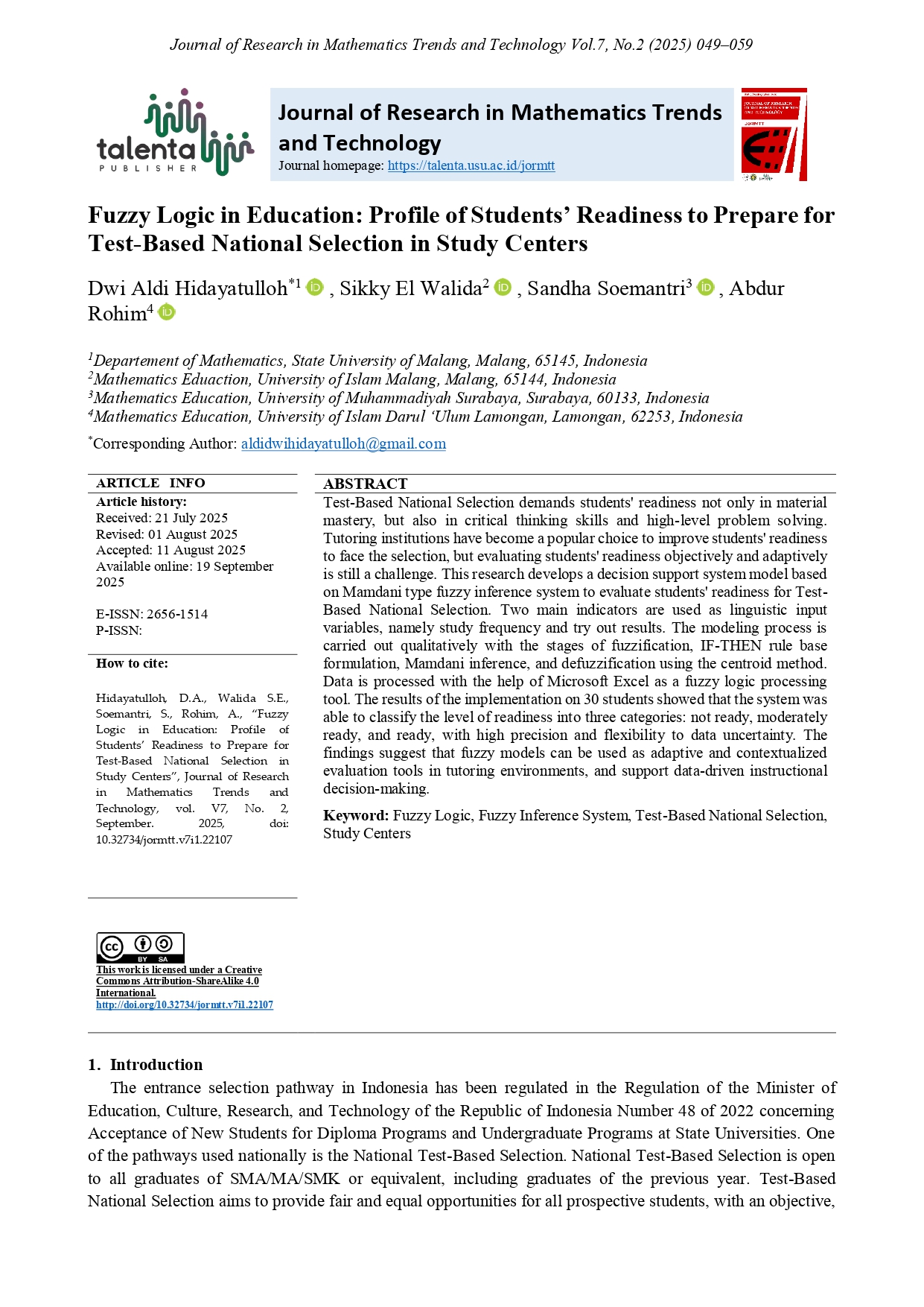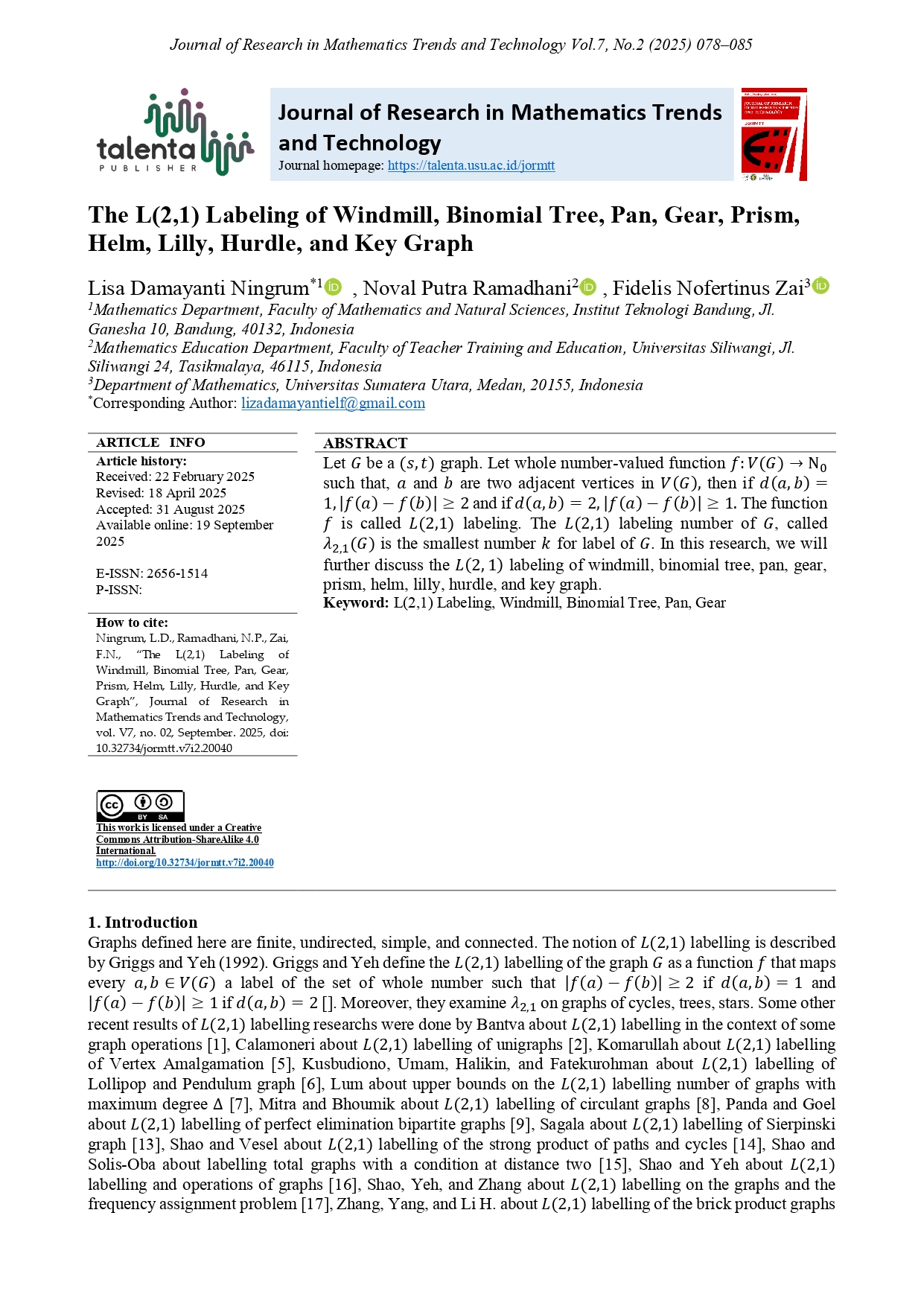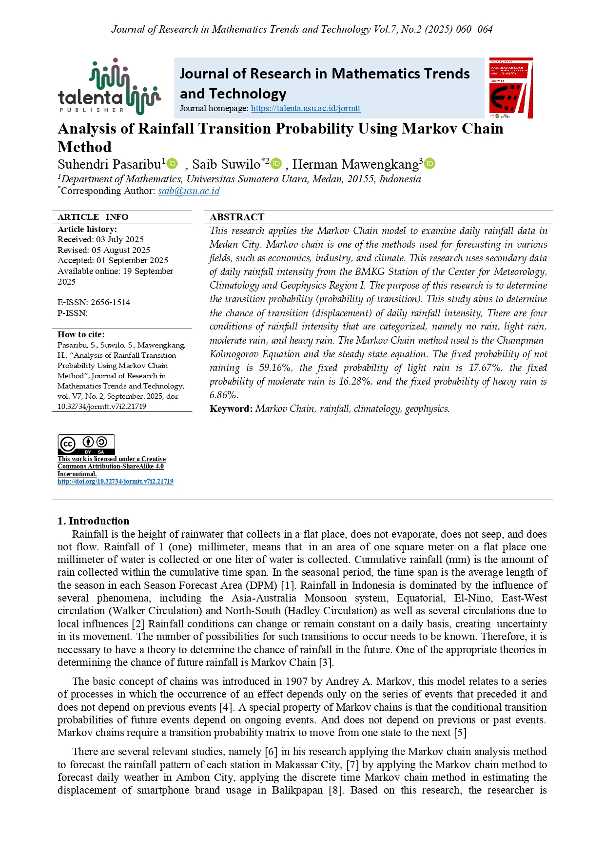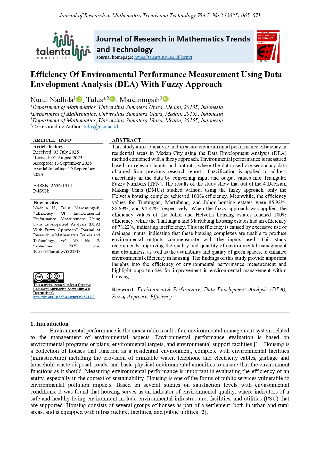 | Publisher | TALENTA Publisher, Universitas Sumatera Utara |